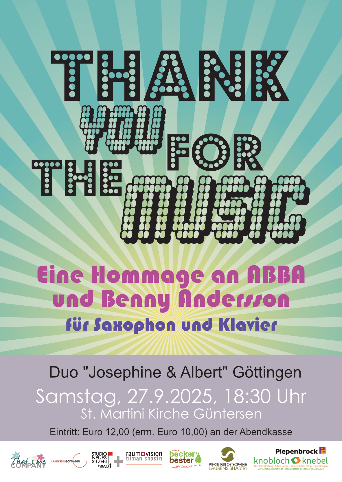 Eine Hommage an ABBA und Benny Andersson für Saxophon und zwei Klaviere - mit Josephine & Albert (Maria und Kai-Uwe Schütz) und Alexander Kuhlo.